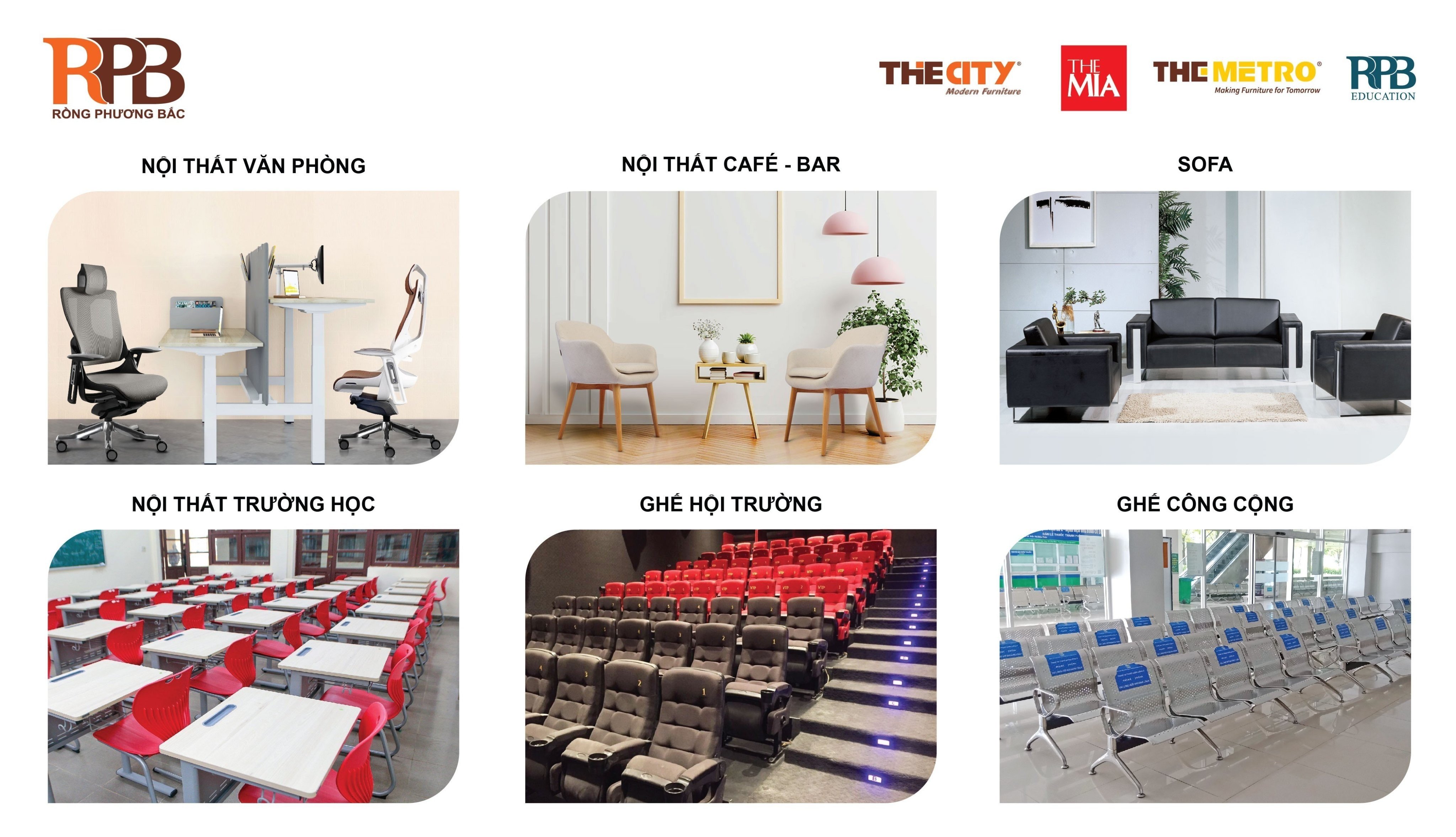 Rồng Phương Bắc – nhà sản xuất và phân phối các sản phẩm nội thất văn phòng, nội thất trường học, sofa, ghế công cộng, ghế hội trường với các thương hiệu hàng đầu The City, The Mia, The Metro tại thị trường Việt Nam.