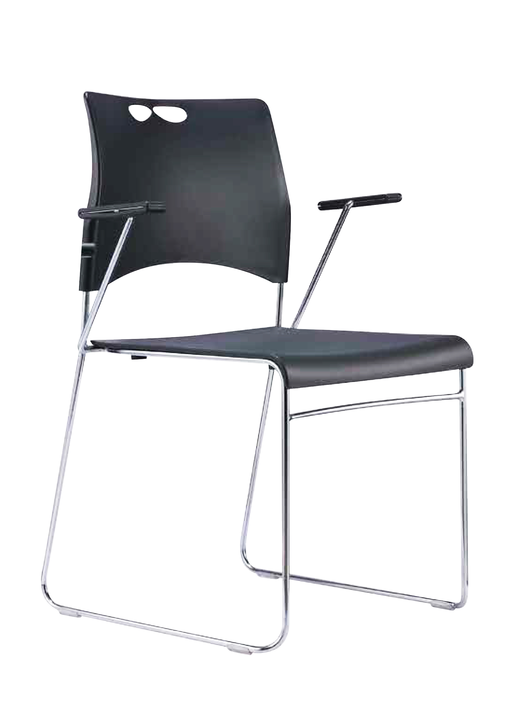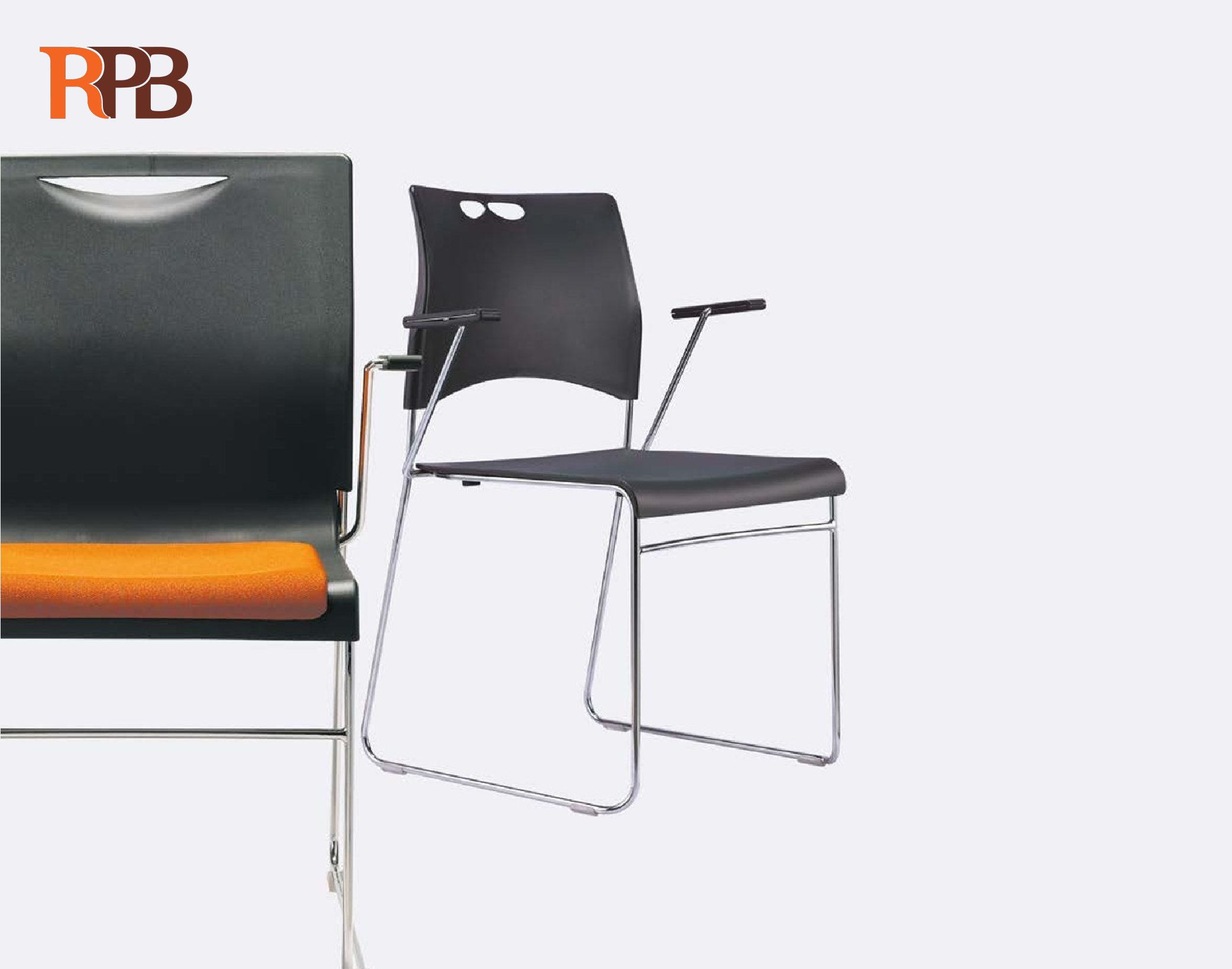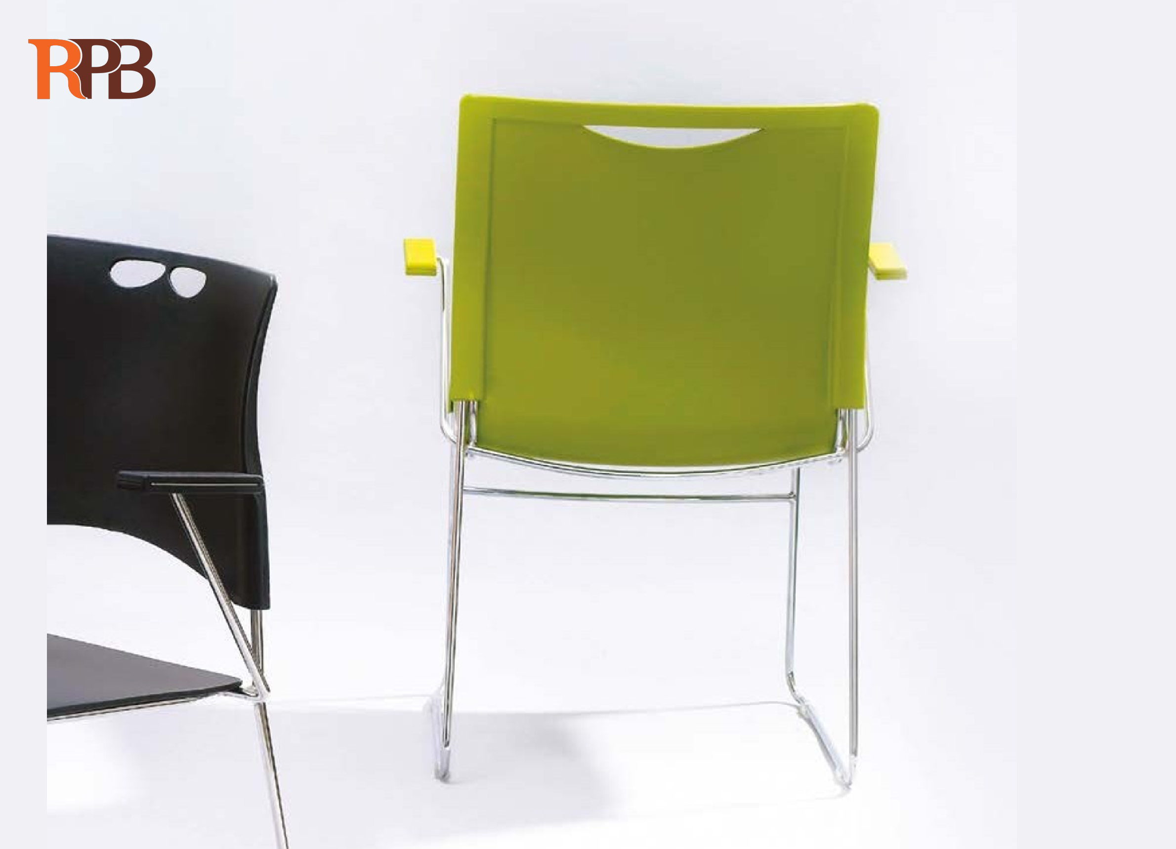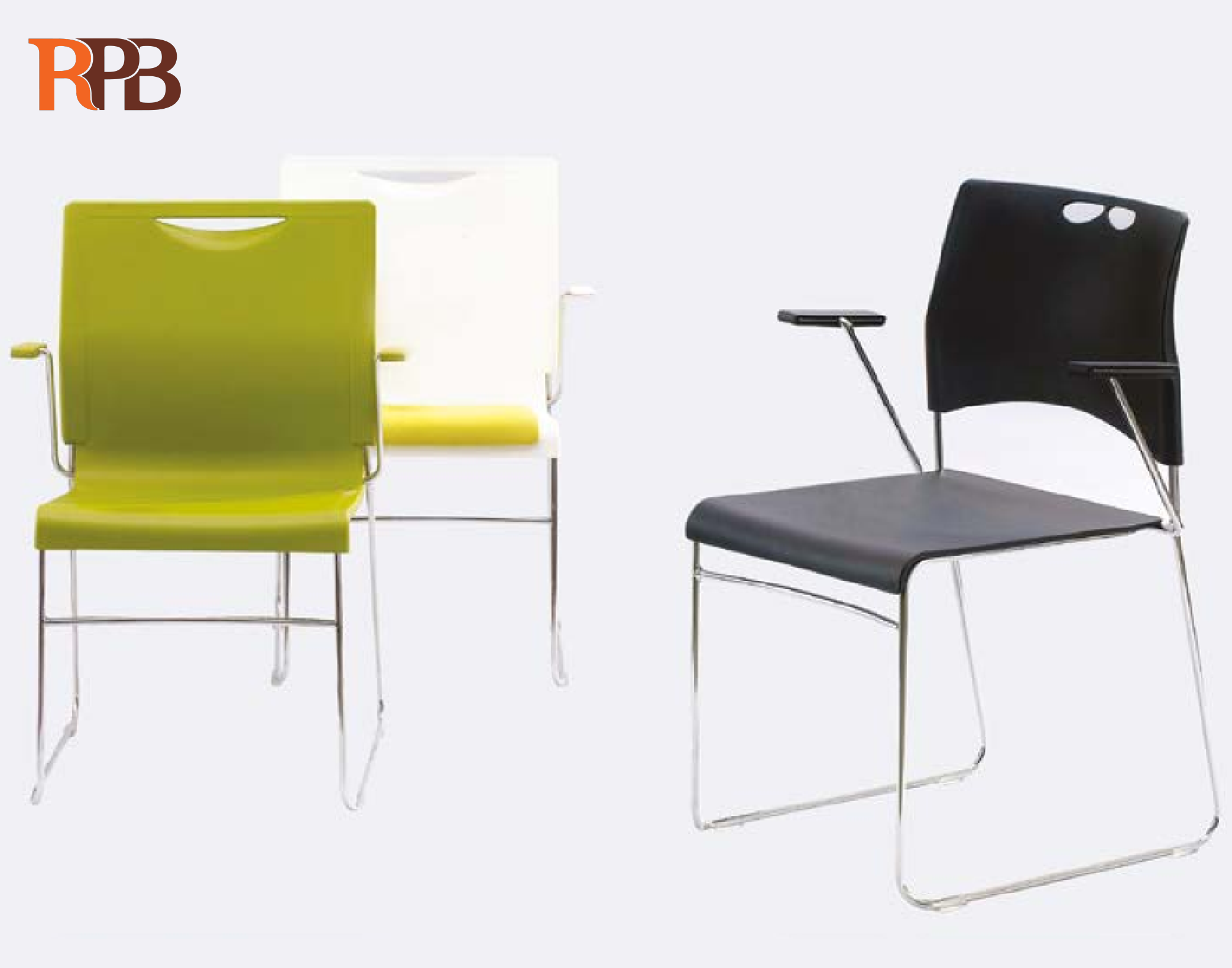 Nệm ghế có thể sử dụng nhựa hoặc bọc vải/ simili êm ái với lớp moose bông đạt chuẩn, thoải mái cho người sử dụng. Đế xe trượt được sử dụng bằng chân sắt mạ chome để chống lại việc sử dụng nhiều và xếp chồng lên nhau. Các đường trượt bằng polycarbonate trong suốt giúp tránh đánh dấu trên sàn cứng.